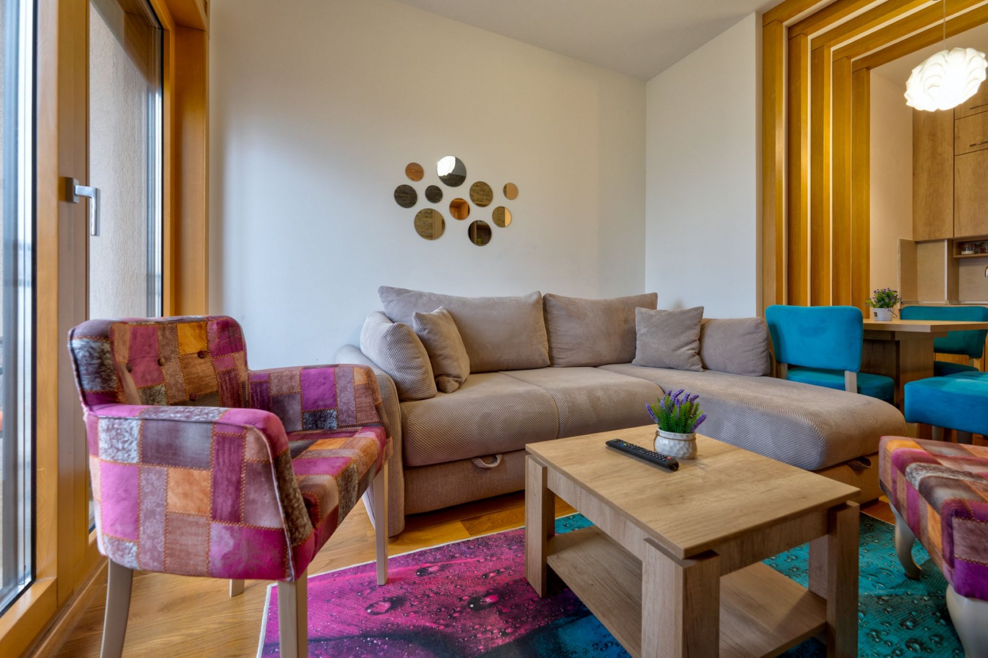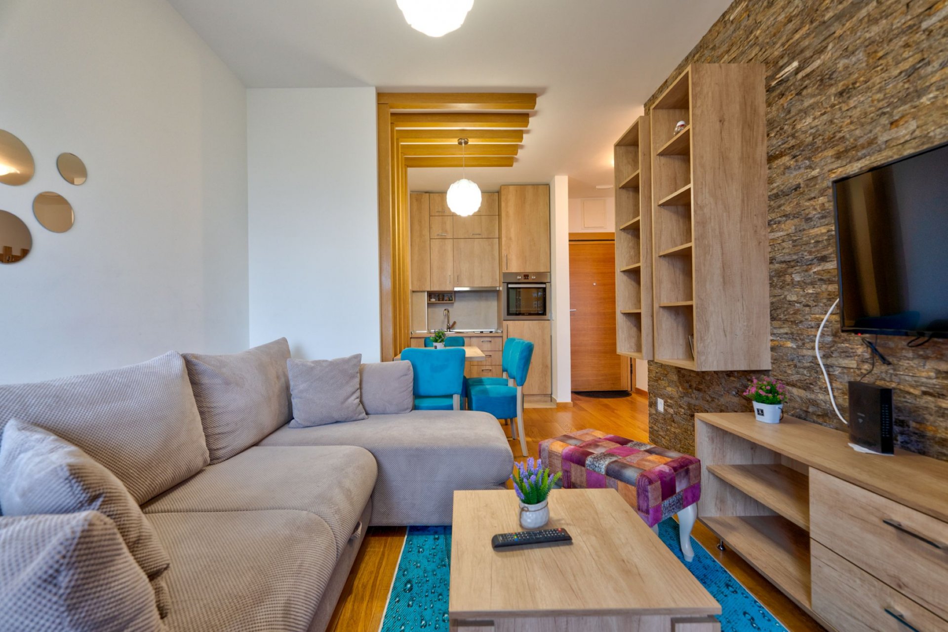 The unit has everything you may possibly need. From the balcony, spacious living room and a fully equipped kitchen to the bathroom designed to the smallest details ensuring a comfortable stay for its guests.