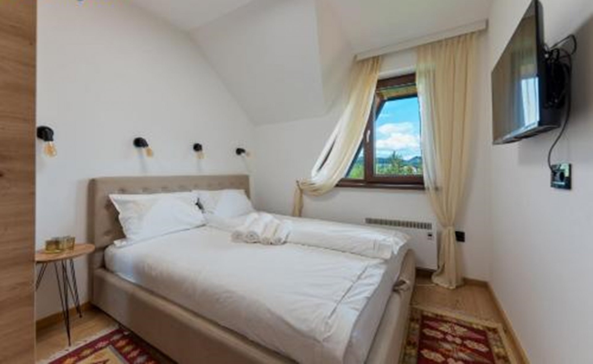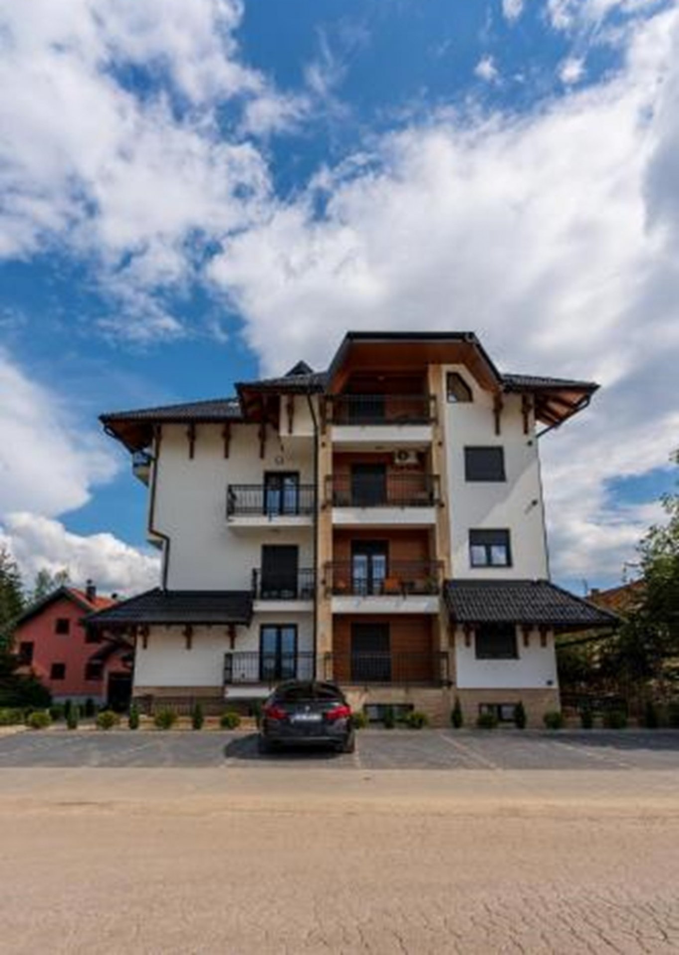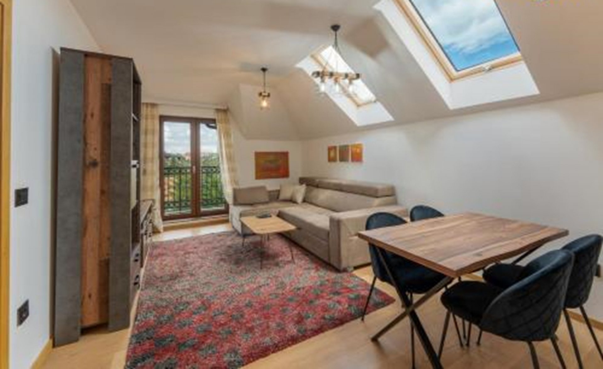 This unit offers a comfortable bedroom with a double bed, a living room with a sofa, and a fully equipped kitchen with a fridge, stove, and dining area. You'll also find a private bathroom with a shower, fresh towels, and toiletries provided. The apartment features free Wi-Fi, a flat-screen TV, heating, and a private balcony or terrace—ideal for relaxing after a day of exploring Zlatibor.