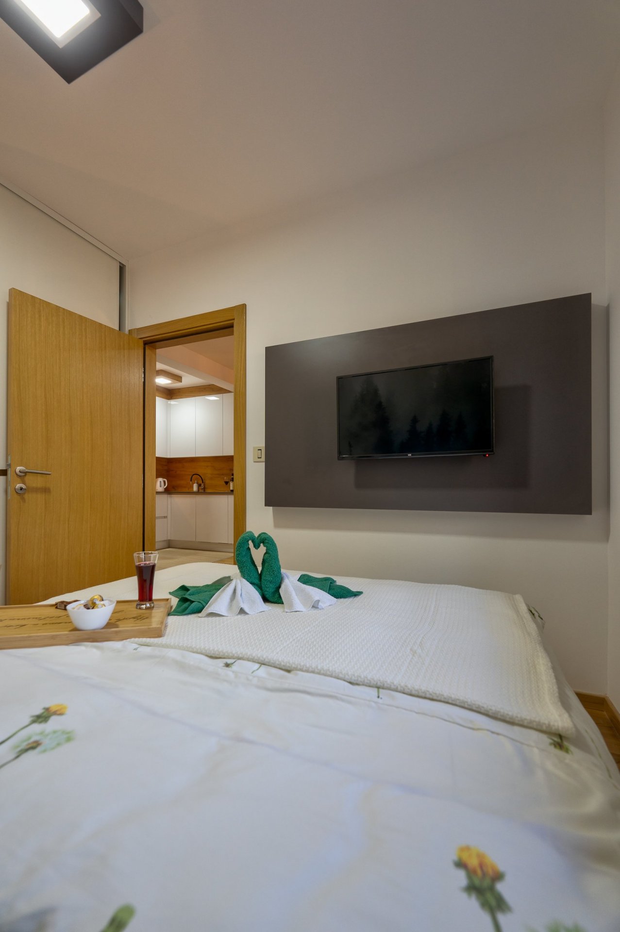 The unit has everything you may possibly need. From the balcony, spacious living room and a fully equipped kitchen to the bathroom designed to the smallest details ensuring a comfortable stay for its guests.