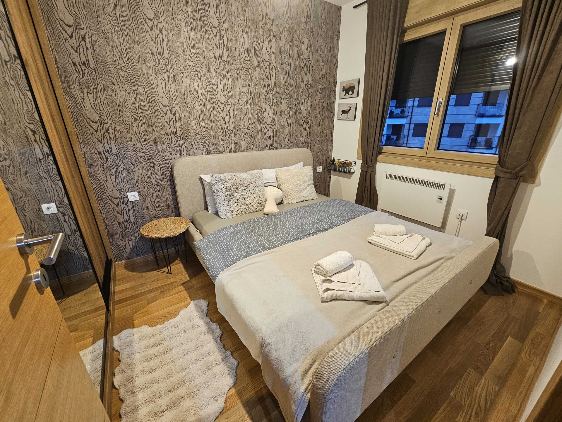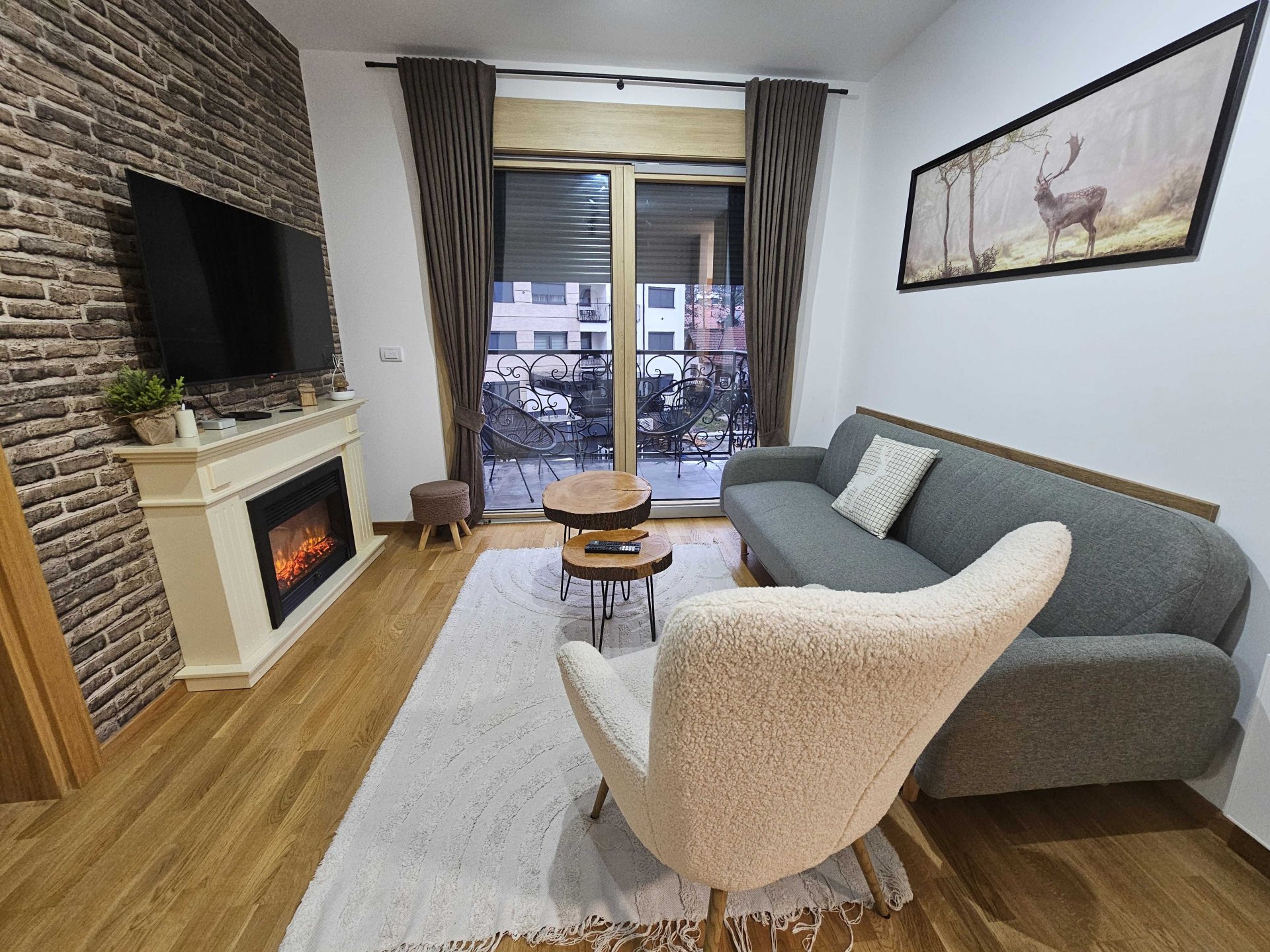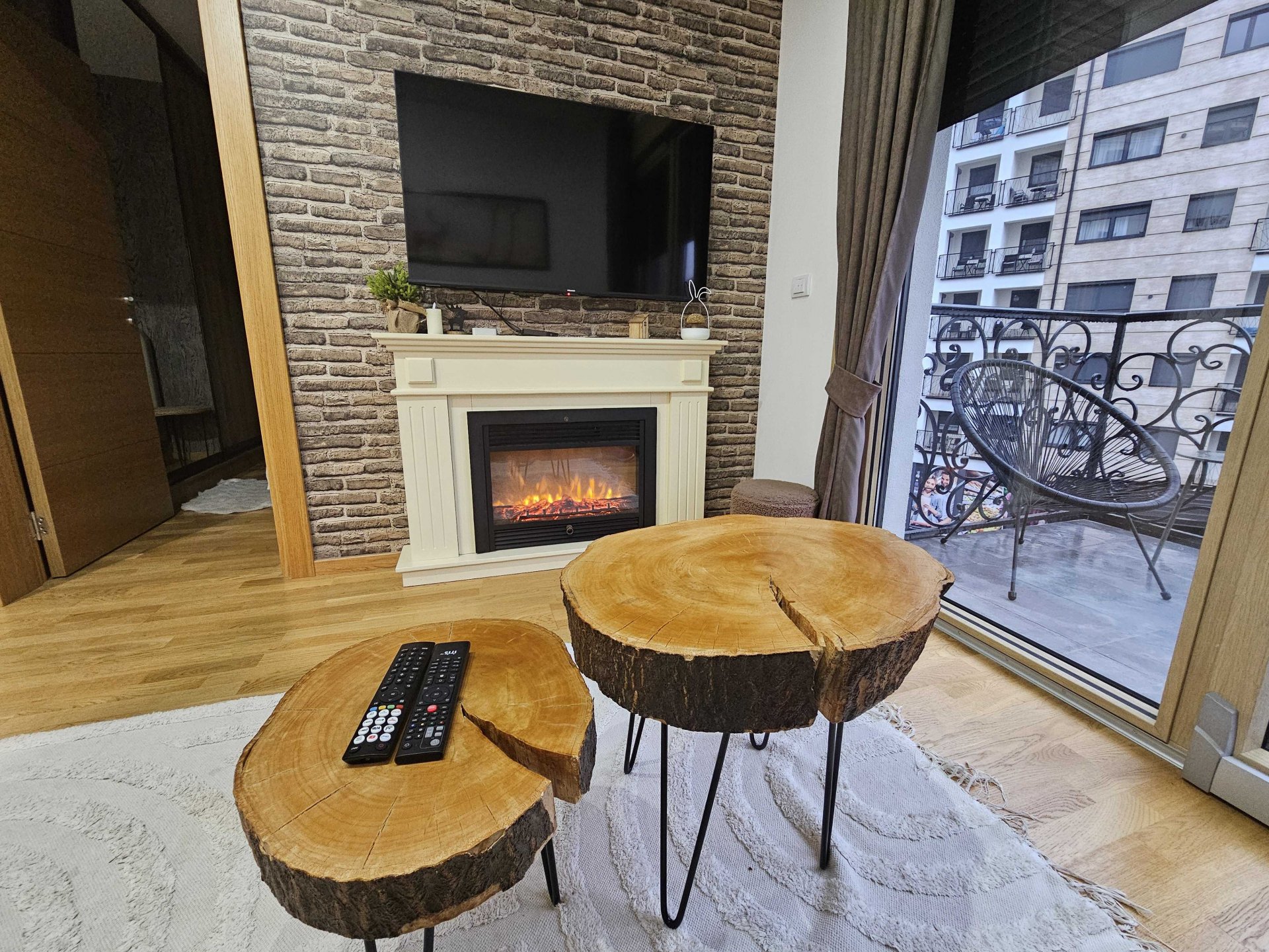 This amazing two bedroom apartment offers a cozy and spacious living room with a fireplace and a beautiful view from the balcony. One bedroom has a Double bed while the other has 2 separate single beds making it perfect for a family vacation. Also has a fully equipped kitchen, Wi-Fi connection and a bathroom done to the smallest details ensuring a relaxing stay for its guests.