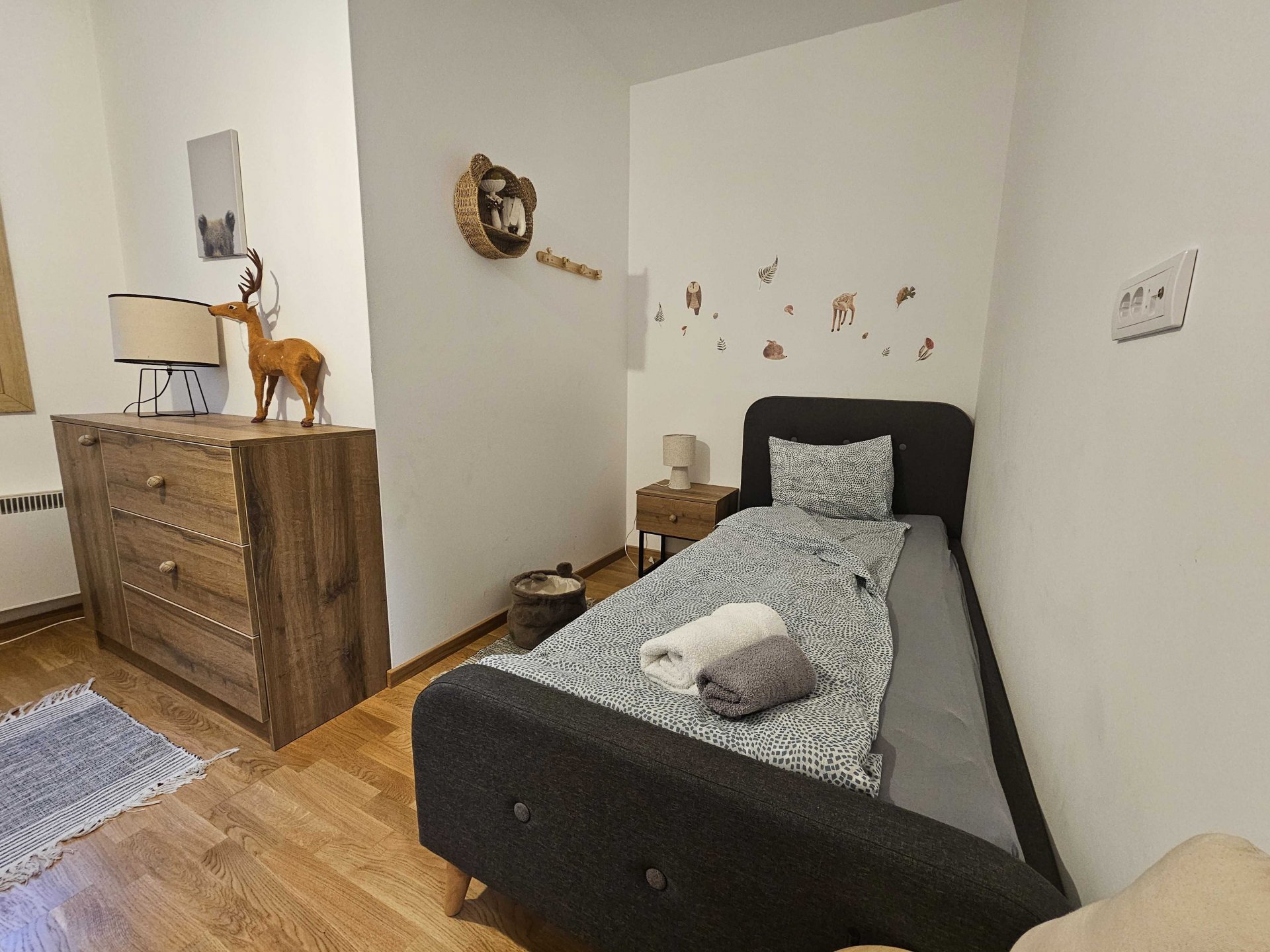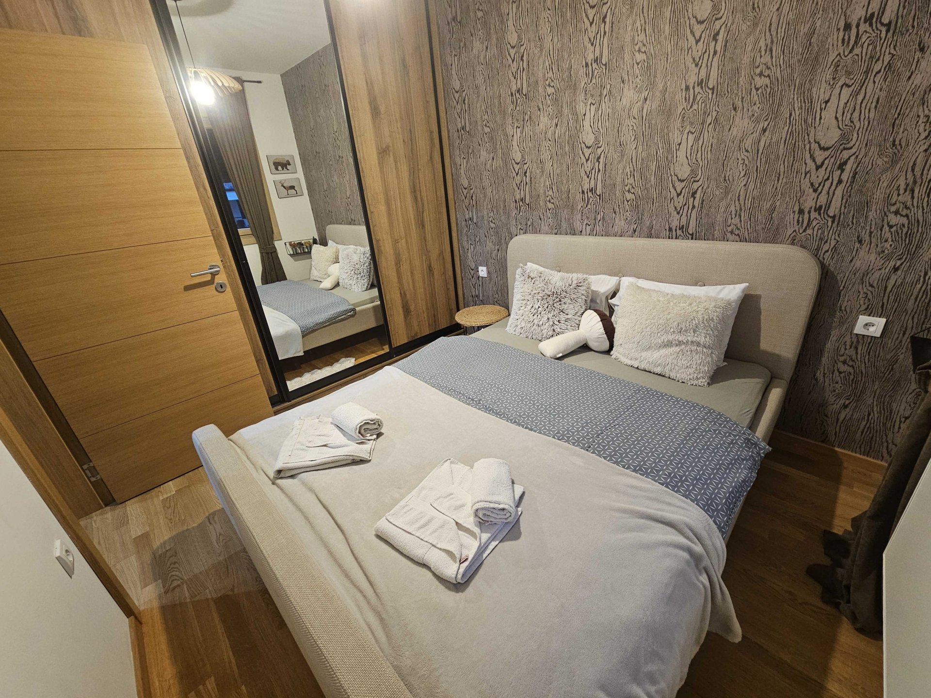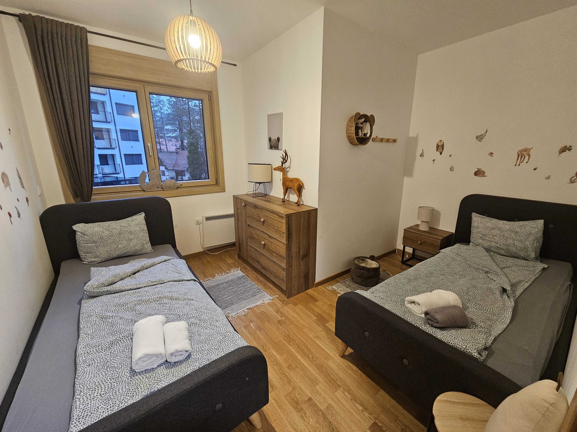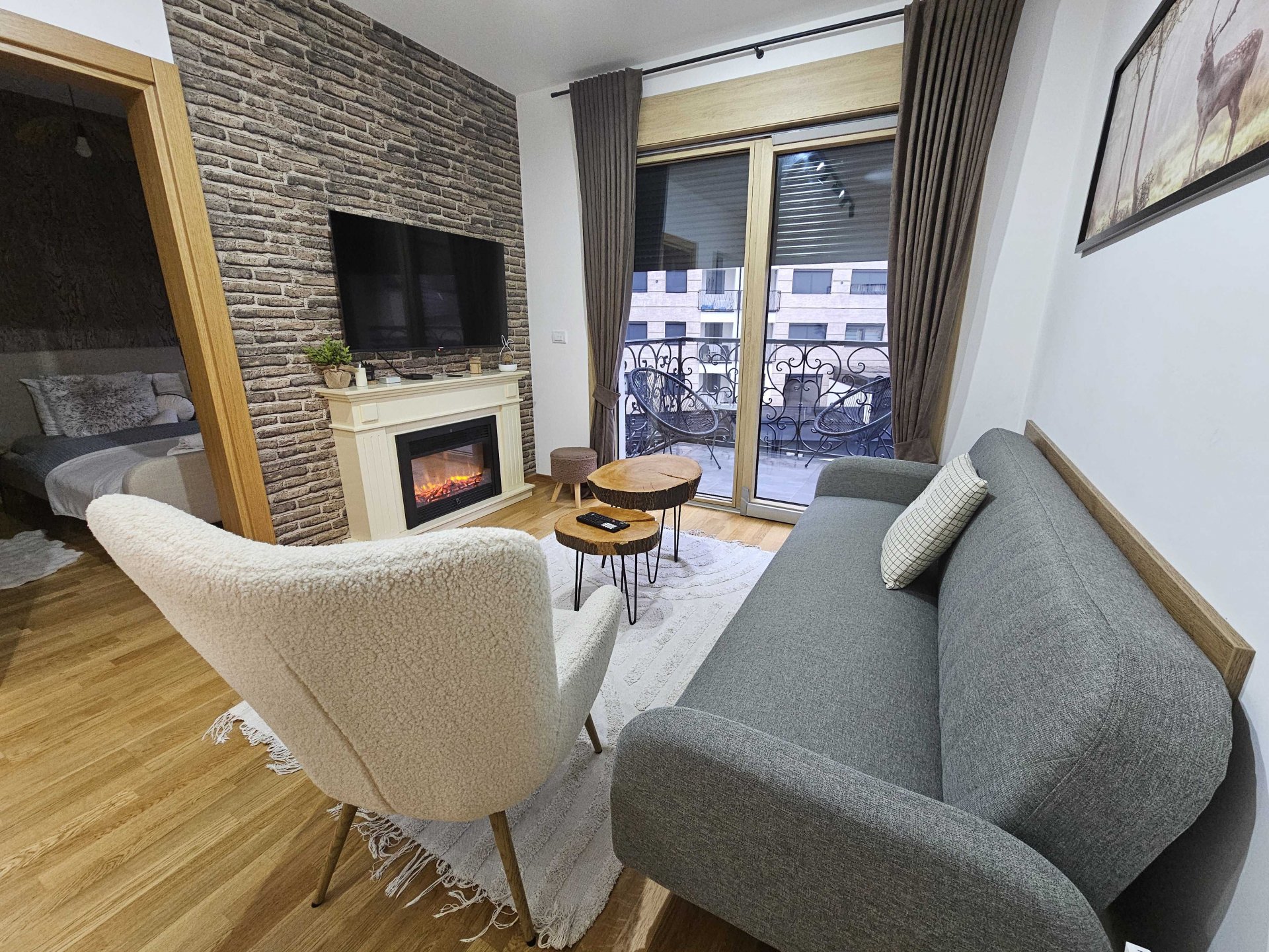 This amazing two bedroom apartment offers a cozy and spacious living room with a fireplace and a beautiful view from the balcony. One bedroom has a Double bed while the other has 2 separate single beds making it perfect for a family vacation. Also has a fully equipped kitchen, Wi-Fi connection and a bathroom done to the smallest details ensuring a relaxing stay for its guests.